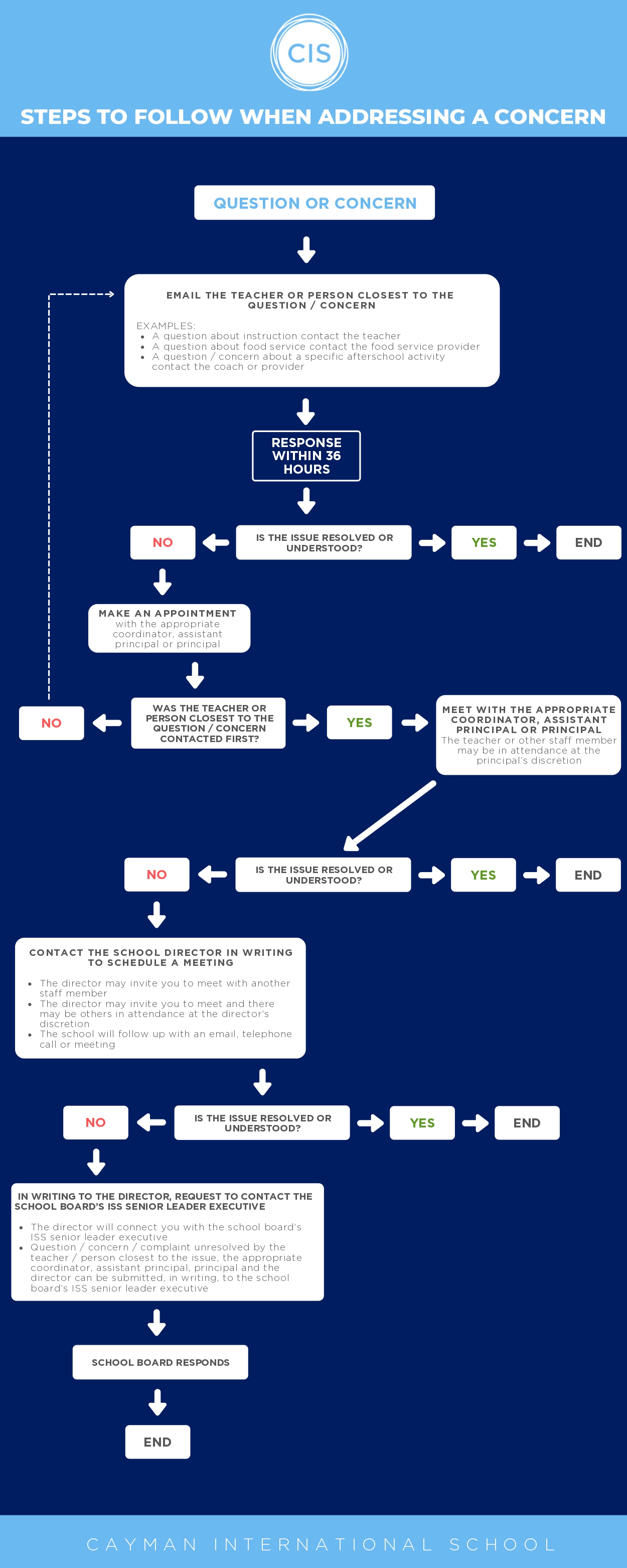 Thus a decision to remain closed as per prior announcements or to reopen on short notice (if there is good fortune for a storm to pass) is not taken lightly. If there has already been an announcement that schools will be closed, it is unlikely that such a decision will be reversed. In an effort to best balance information, communities’ diverse wishes and certainly people’s safety. CIS is reviewing its processes taking a best account possible in the future event of an early All Clear announcement. Of course noting that when an All Clear announcement is made by the Cayman Islands, they are also managing multiple interests such as, businesses possibly being anxious to open, environmental, utilities and safety authorities possibly preferring to delay an All Clear until risk assessments are thoroughly checked and double checked.