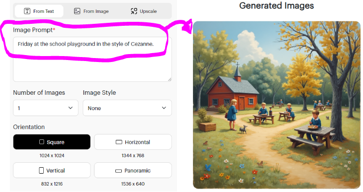 For some food for thought, the text below was generated in 14 seconds by an AI application that primarily specializes in written text and essays. I entered the following as a title, “The benefits and challenges of AI in Education.” Also, to add a little colour, noting that a picture is apparently worth a thousand words, in a different application that primarily specializes in images, I entered the prompt, “Friday at the school playground in the style of Cezanne.” In 4 seconds the image below was produced. Enjoy …
